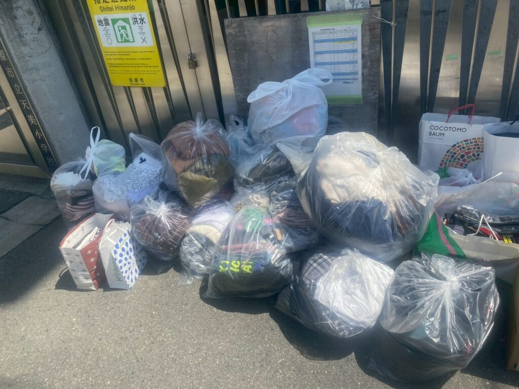 天美小学校さんでの不用品回収は終了しておりますが、ホームページ記載の集荷住所への持ち込み、郵送での寄付は引き続き受け付けさせていただいておりますので今回荷造りが間に合わなかった方や初めてこの活動を知られた方はホームページにて詳細をご確認ください。